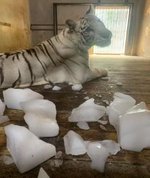 暑氣襲來時,赭山動物園的毛孩子們收到了 “降溫大禮”!虎山的老虎們愜意地趴在冰塊邊,爪子時不時撥弄冰晶,琥珀色的眼睛瞇成舒服的弧線;棕熊更逗,抱著冰塊打滾時發(fā)出呼嚕聲,圓滾滾的身子把冰壓得 “咔嚓” 響。飼養(yǎng)員們還在水池里投放碎冰,水珠濺起的涼意讓猛獸們紛紛展露萌態(tài),這場充滿童趣的物理降溫,正把夏日燥熱釀成毛茸茸的快樂。