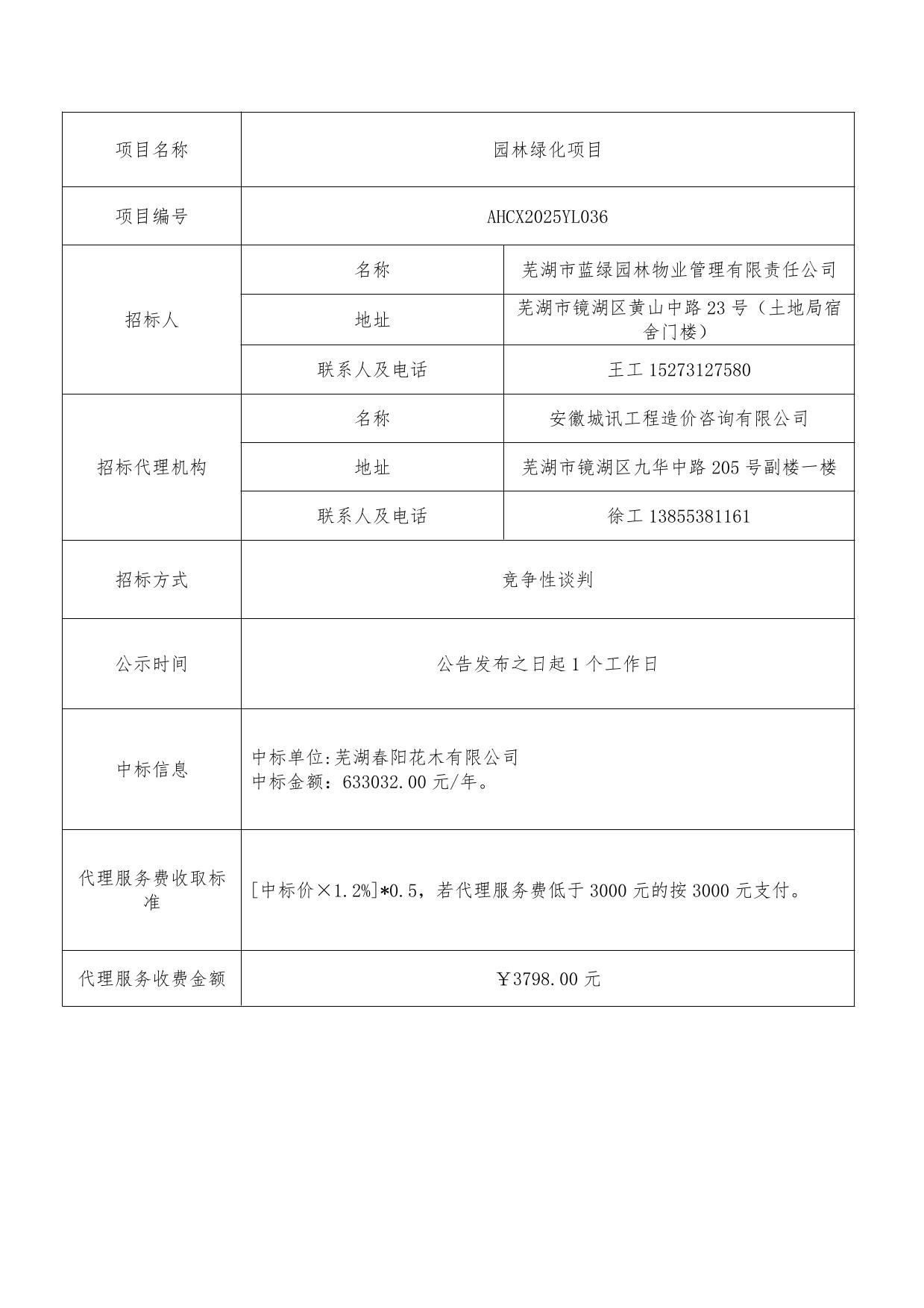 園林綠化項(xiàng)目成交結(jié)果公示
