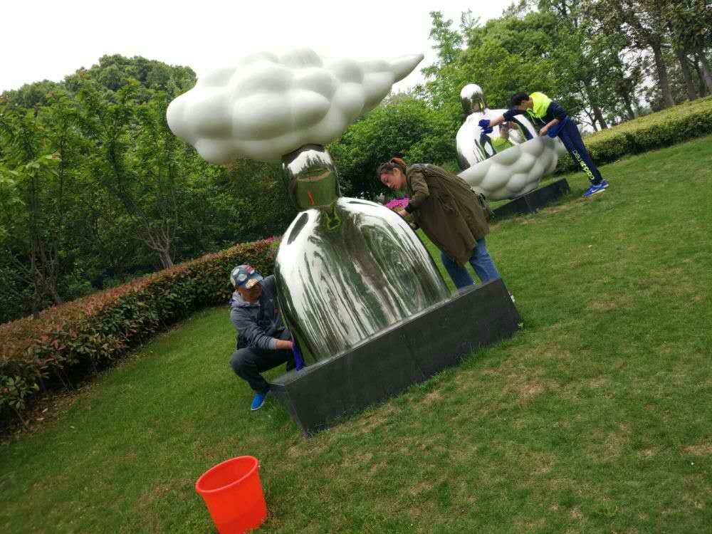 桶等除草、保潔工具立即行動了起來,沒有工具的黨員也不懼臟、不怕累,徒手拔草、清洗雕塑。汗水混合著芳草泥土的氣息,顯得格外的芬芳,整個活動充滿了正能量。在黨員們的齊心合作下,不一會兒功夫,這一區(qū)域的雜草就剔除了很多,雕塑也煥然一新,放眼望去,雕塑公園更加整潔了。