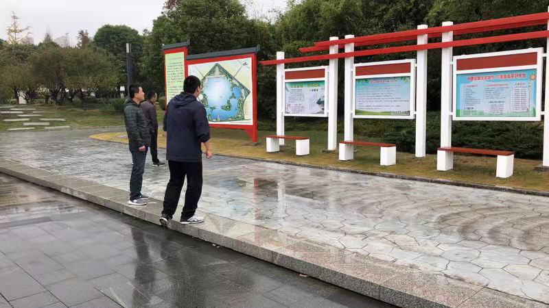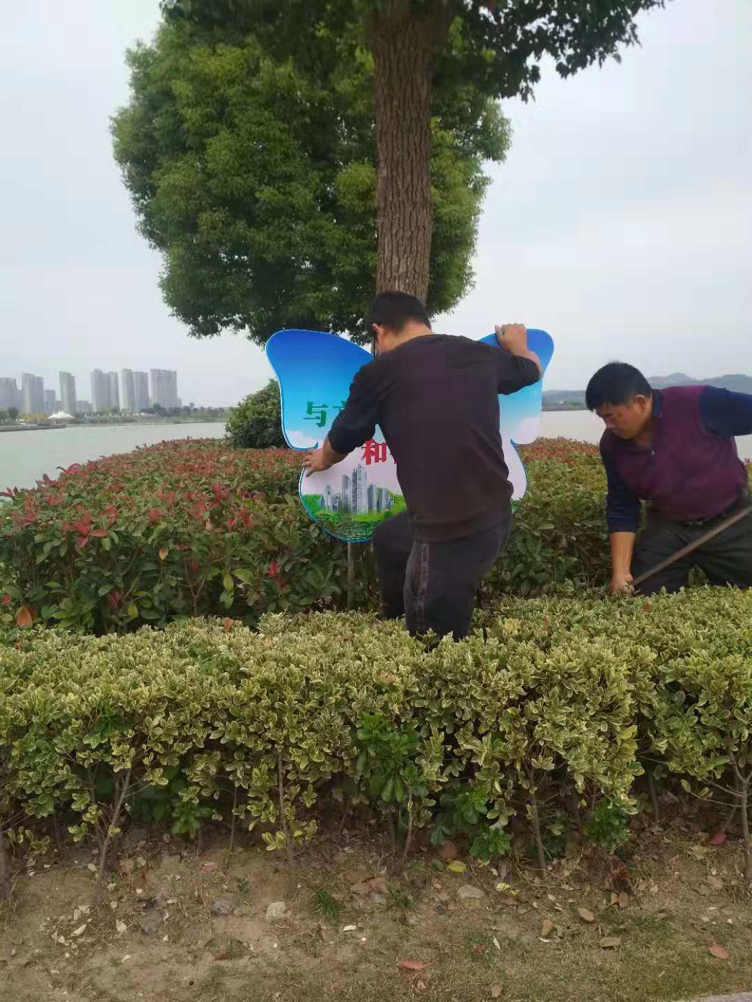 蕪湖城市園林集團(tuán)有限公司三山分公司十月份文明創(chuàng)建期間, 三山分公司全體員工配合三山區(qū)住建委在蓮花湖公園內(nèi)清理舊的文明標(biāo)語(yǔ)牌,安裝新的文明標(biāo)語(yǔ)牌,迎接文明檢查團(tuán)。