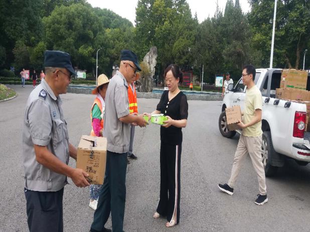 驕陽似火,持續(xù)的高溫天氣給蕪湖城市園林集團有限公司的綠化養(yǎng)護、公園管理等安全生產工作帶來新的考驗。為確保各子公司、分公司一線廣大勞務人員平安度暑,促進各養(yǎng)護管理標段繼續(xù)保持良好的安全生產態(tài)勢,8月25日和26日,園林集團副總曹慧同志及行政部一行代表集團工會到各子公司、分公司,為堅守崗位的一線工人們送去藥品、沐浴洗護等防暑降溫物資,也將集團公司的關心和愛護帶給他們。