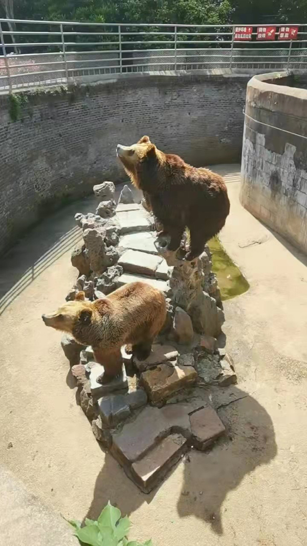 瞧!那兩只可愛(ài)的棕熊正昂著頭,仿佛在說(shuō):“待到疫情散去,歡迎大家來(lái)赭山公園看我們!”。