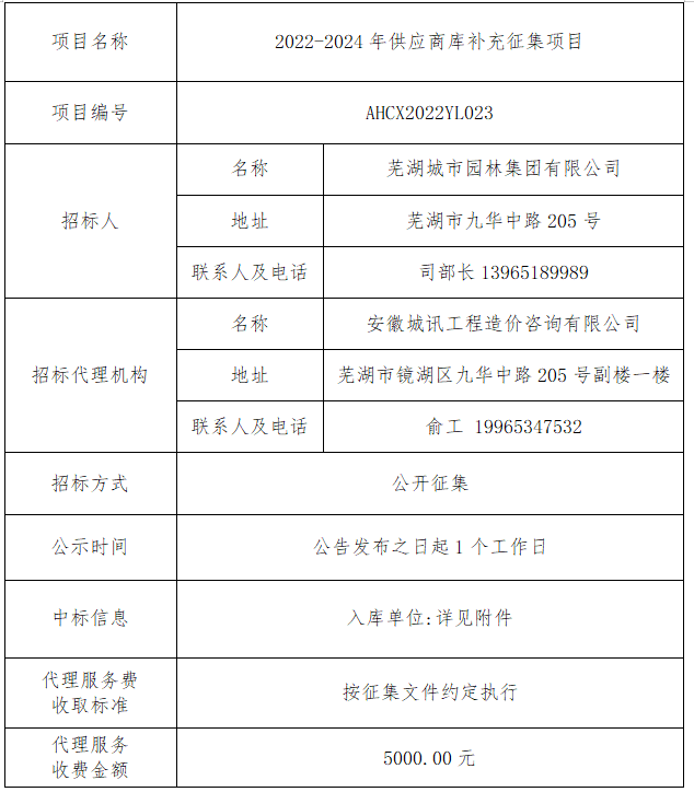 2022-2024年供應(yīng)商庫(kù)補(bǔ)充征集項(xiàng)目中標(biāo)公告