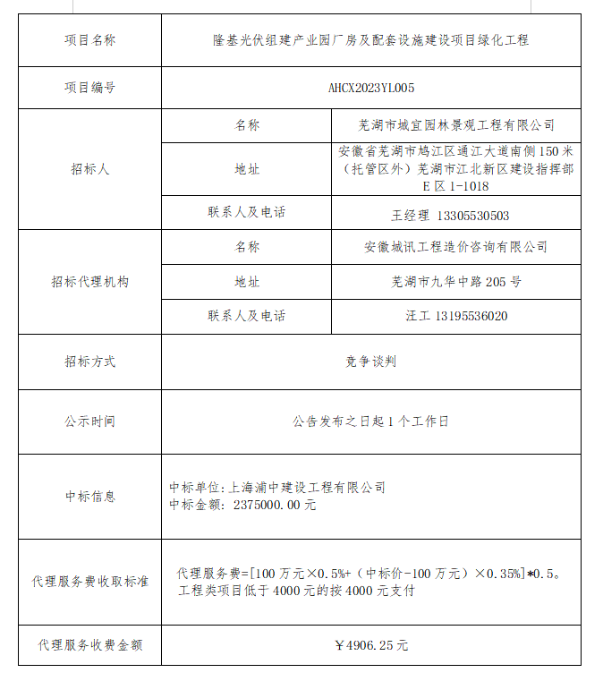 隆基光伏組建產(chǎn)業(yè)園廠房及配套設(shè)施建設(shè)項目綠化工程中標(biāo)結(jié)果公示