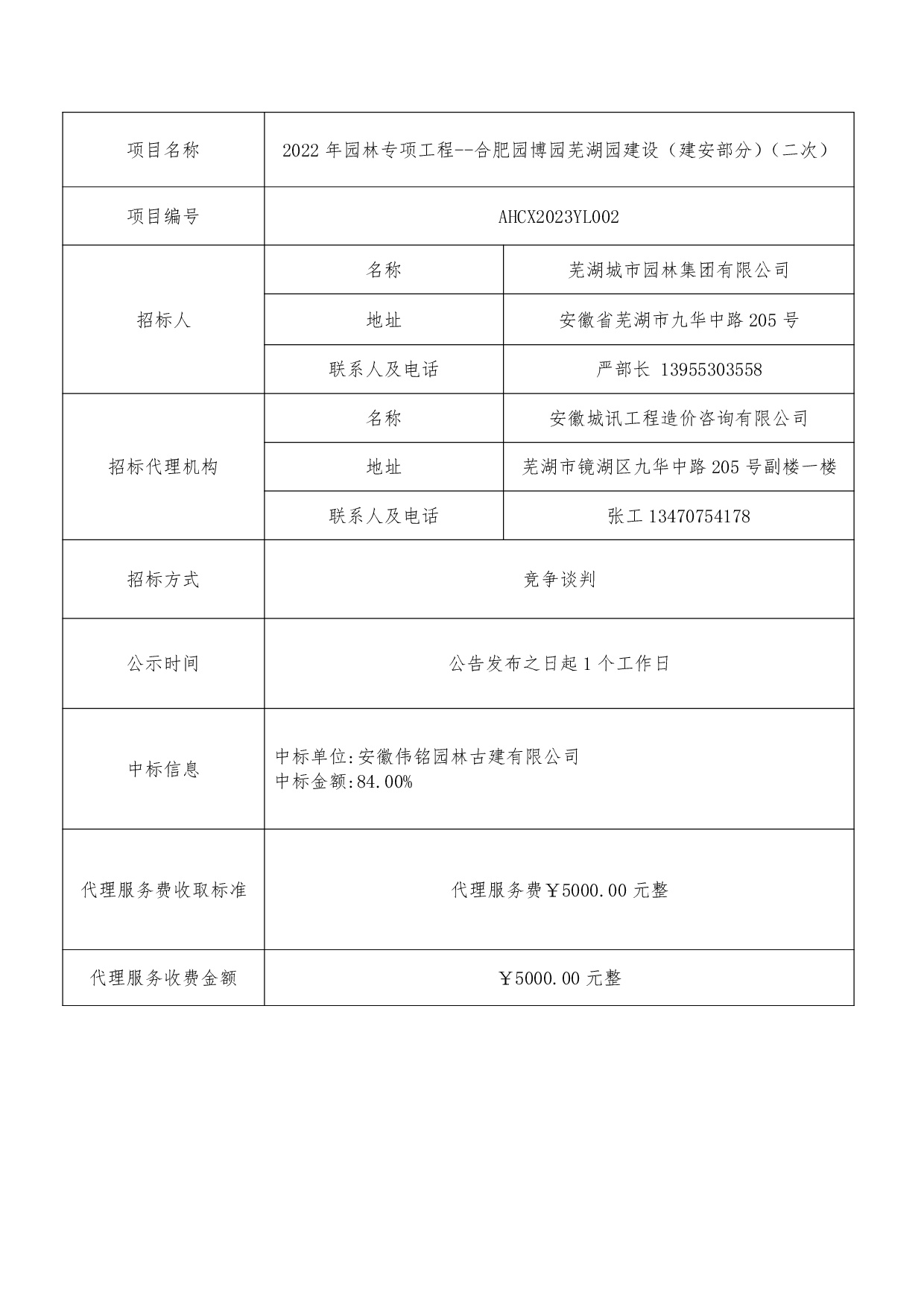 2022年園林專項(xiàng)工程--合肥園博園蕪湖園建設(shè)(建安部分)(二次)中標(biāo)結(jié)