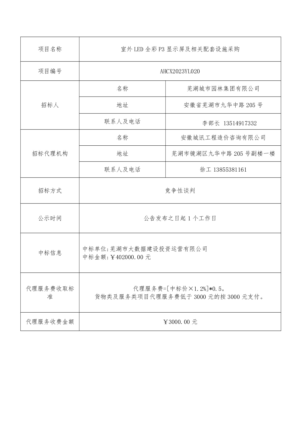 室外LED全彩P3顯示屏及相關(guān)配套設(shè)施采購中標(biāo)結(jié)果公示