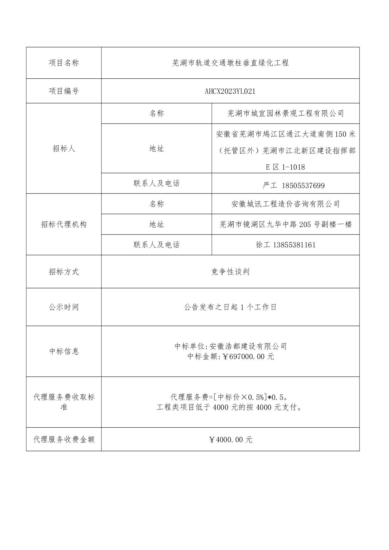 蕪湖市軌道交通墩柱垂直綠化工程中標結(jié)果公示