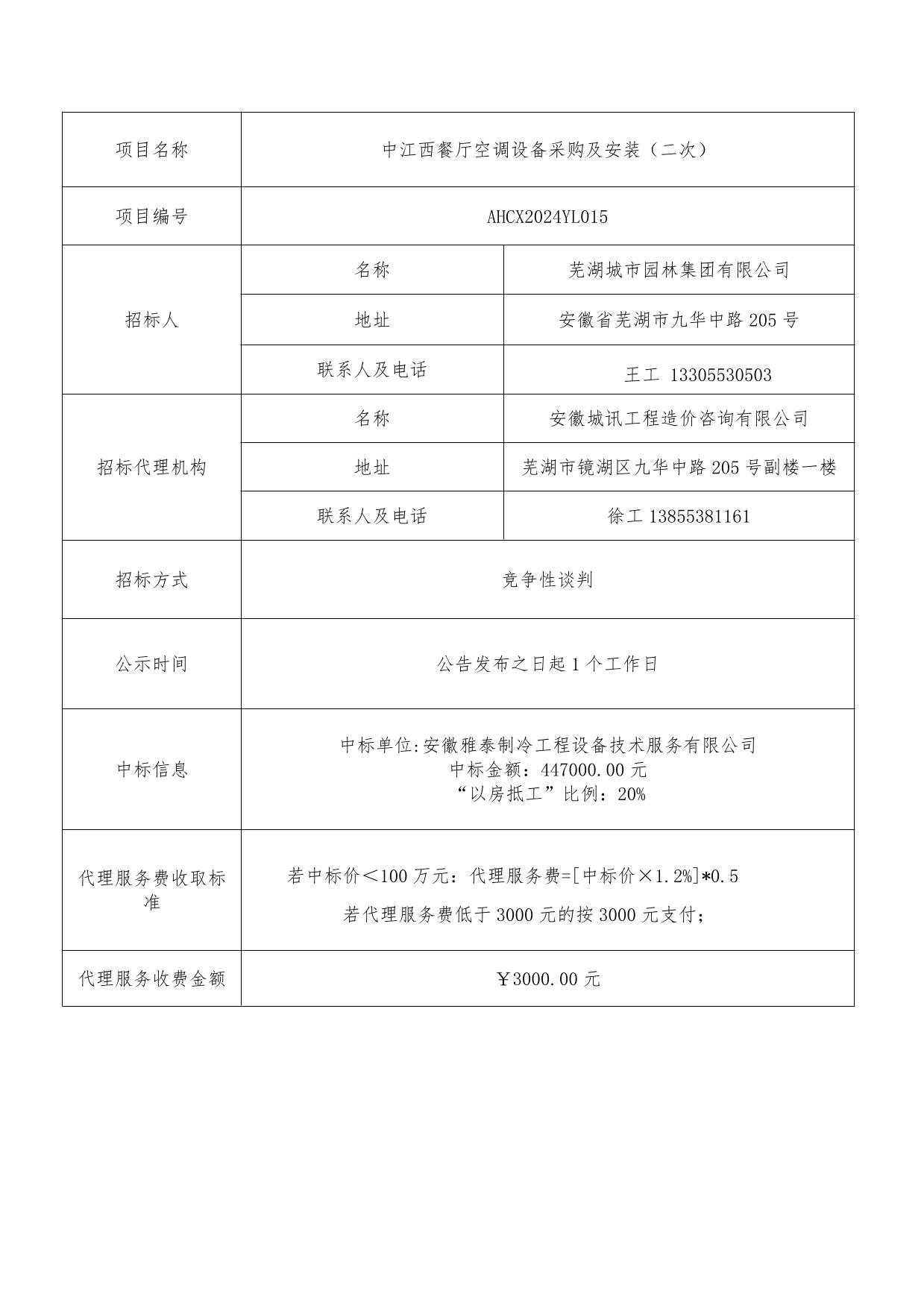 中江西餐廳空調(diào)設備采購及安裝(二次)成交結(jié)果公告