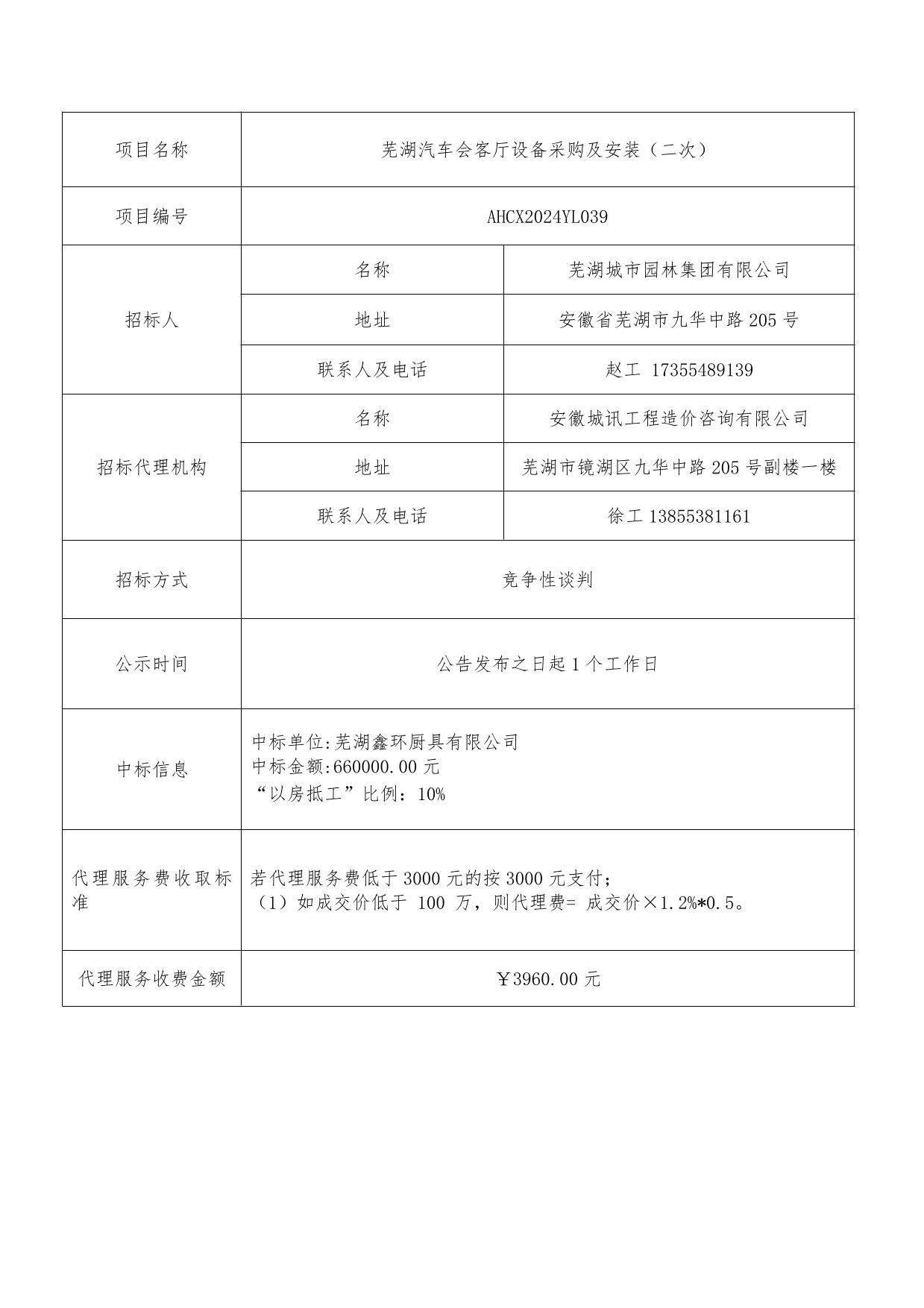 蕪湖汽車會客廳設(shè)備采購及安裝(二次)成交結(jié)果公示